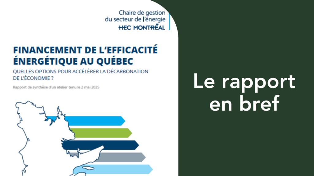 Cet article propose un résumé des points saillants du rapport « Financement de l’efficacité énergétique au Québec : Quelles options pour accélérer la décarbonation de l’économie? », rédigé par Johanne Whitmore et Pierre-Olivier Pineau de la Chaire Énergie – HEC Montréal, avec le soutien du gouvernement du Québec.